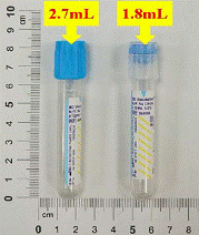 請注意當病患CBC檢驗之HCT數值有>55%之情形時,採集檢體前請先聯絡血液室索取特殊抗凝劑含量檢體試管,並告知血液室病患之HCT數值。 |