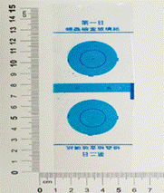 2. 撕開浮貼膠紙用上膠面(即膠面圓圈處)對準肛門、以手指用力壓貼,重新粘上浮貼膠紙,即完成第一天的採樣。